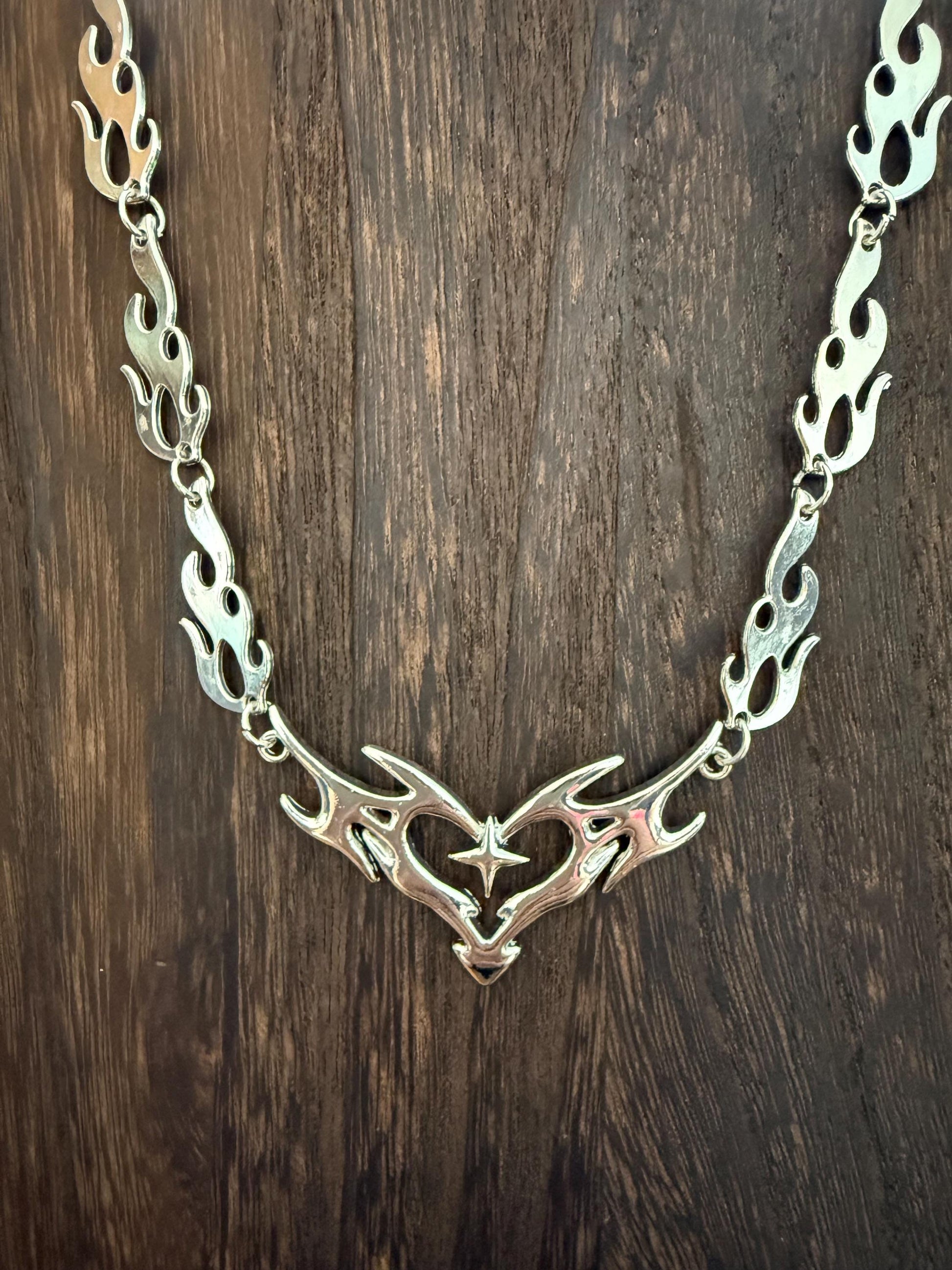Cross Flame Choker Necklace - Stainless Steel, alloy,