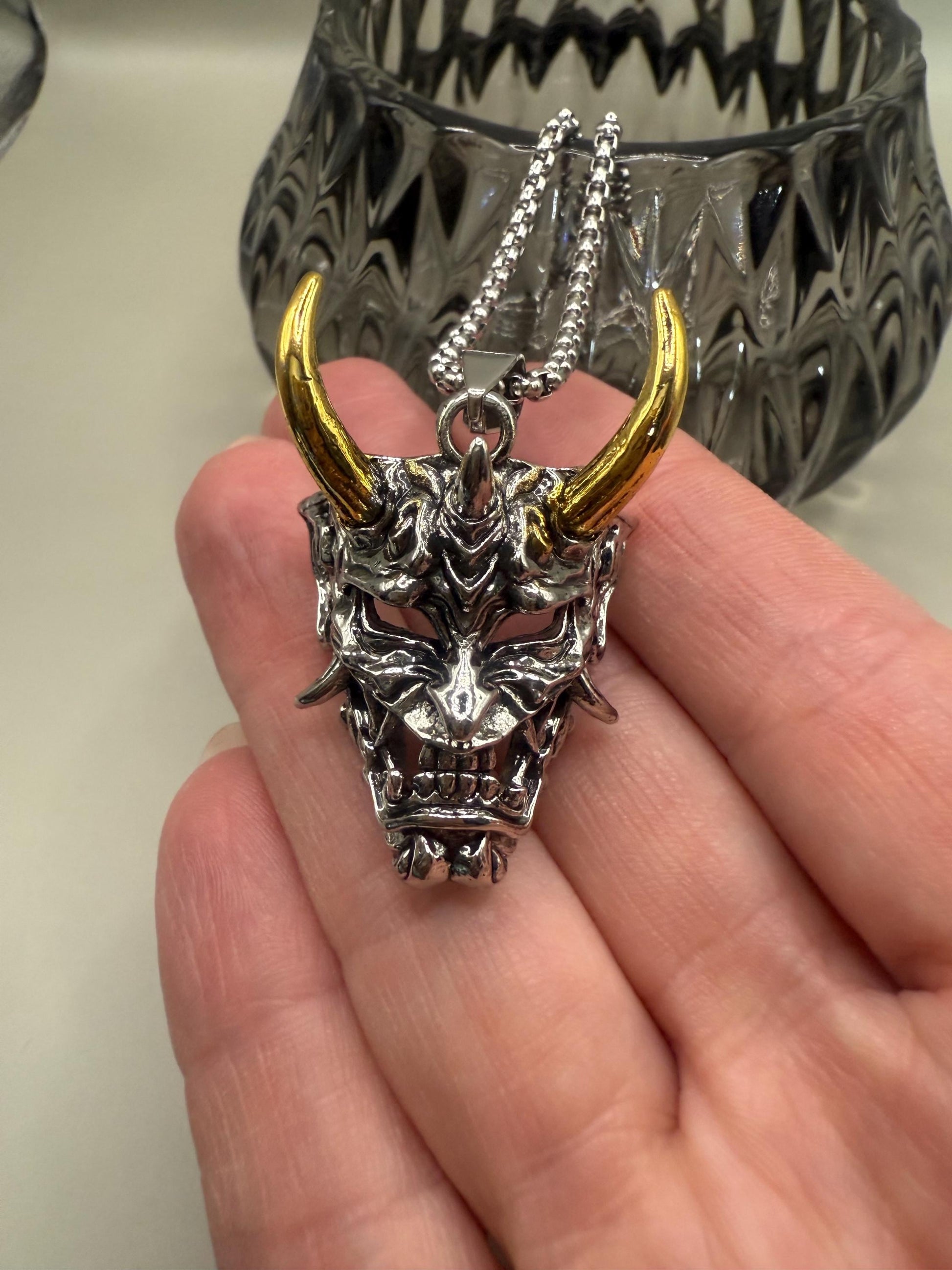 Silver Colour Japanese Hannya mask Pendant Necklace