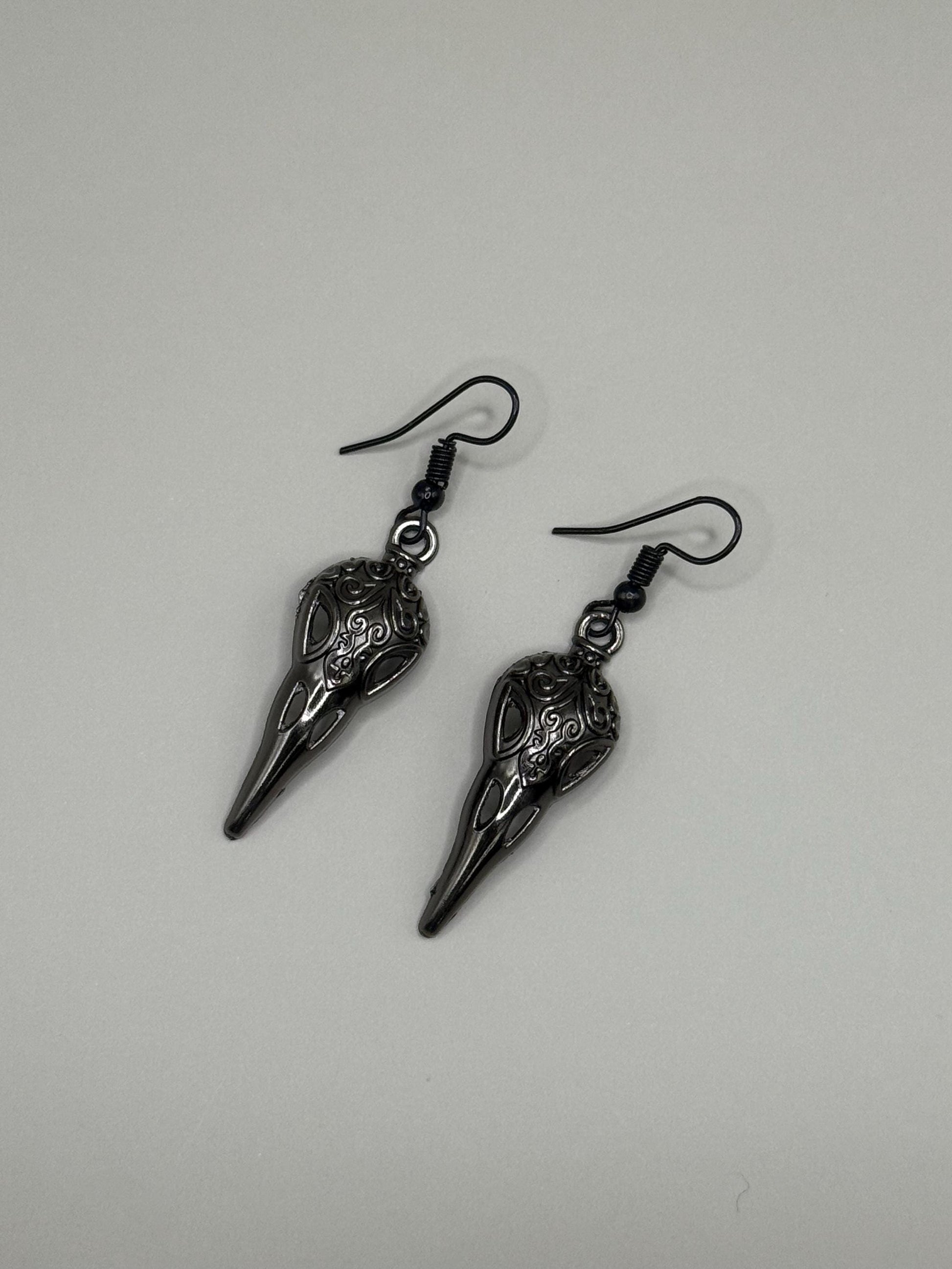 Raven skull earrings. Handmade with black metal fixings. Perfect to finish off your alternative outfit 🖤🤩
