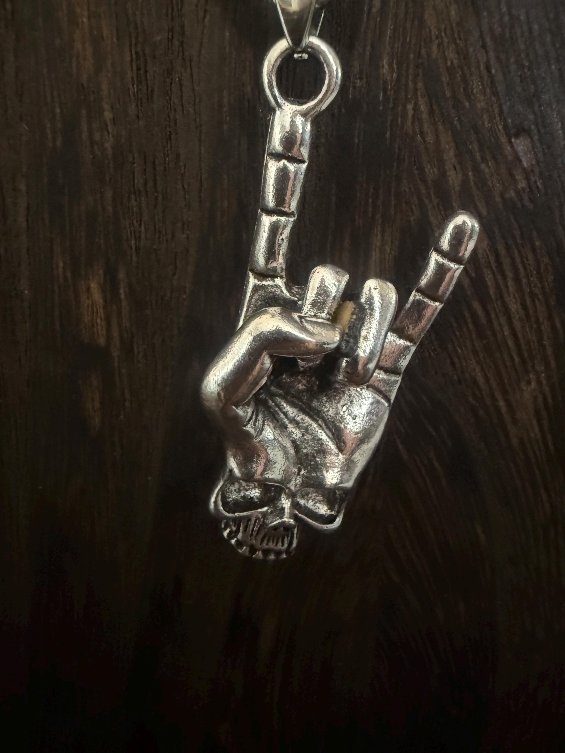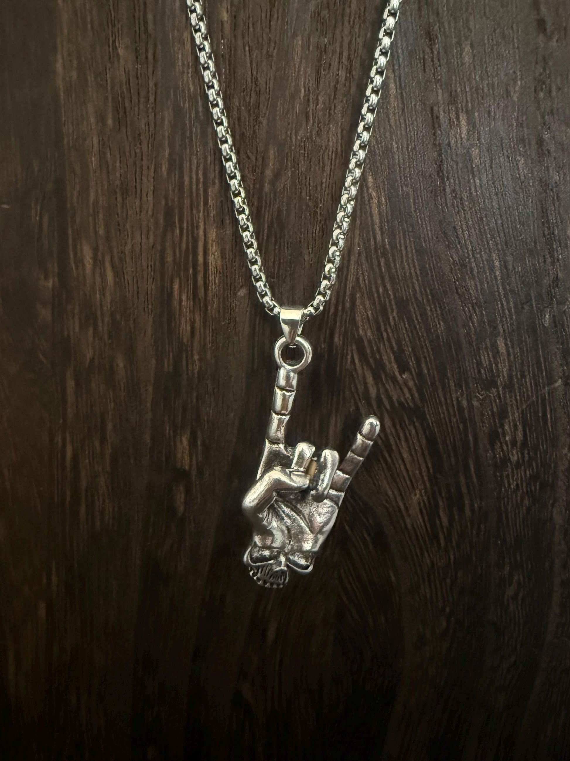 Vintage Silver Colour Rock Horns with skull detail pendant necklace
